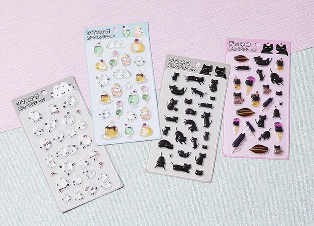 立体感のあるぷっくりの質感が、暮らしの中に小さなときめきと癒しを届けてくれる。人気のデコネコと、愛らしい表情が魅力のシマエナガをモチーフに採用。メッセージカードのデコレーションやギフトラッピングのワンポイントにも活躍する。