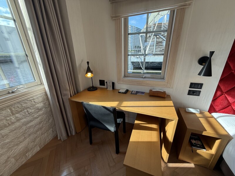 オランダのアムステルダムにある「ボートハウス」をイメージした外観天王洲アイル駅を下車し、新東海橋の手前の階段を下ってボードウォークを歩くと、水上に浮かんでいる個性的なコンテナのような建物が、「PETALS TOKYO」です。まずはフロントでチェックイン。