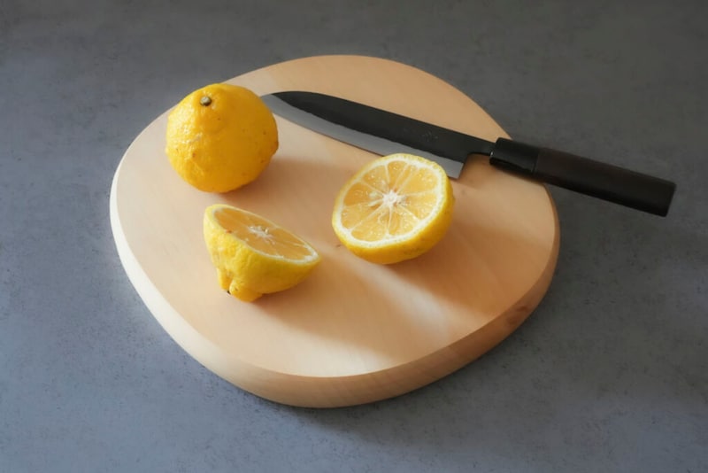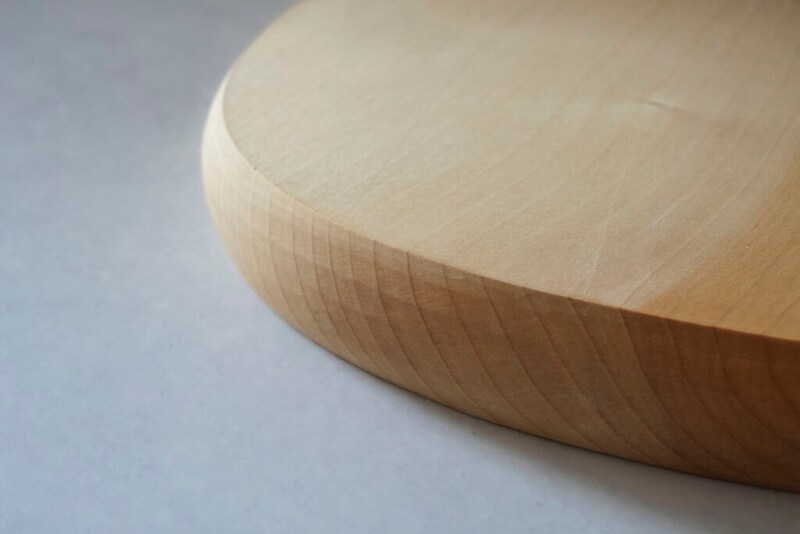 特に惹かれたのは、側面がほんのりと膨らむように手作業で削られているディテールでした。単に直線で落とされていないため、道具でありながら、どこかオブジェのような佇まいを持っています。素材はイチョウで、刃あたりがやわらかく、包丁を受け止める感触にも安心感があります。