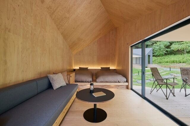 サウナは日帰りでも利用可能ですが、宿泊用キャビンで1泊旅行も楽しむことも。夜には焚き火と満天の星空に囲まれながら、里山ならではの静けさを存分に味わえるのも醍醐味です。