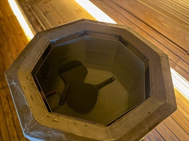 温度、湿度管理も実にプロフェッショナルで、中央のサウナストーブによって、どこに座ってもムラなく身体を温めてくれます。