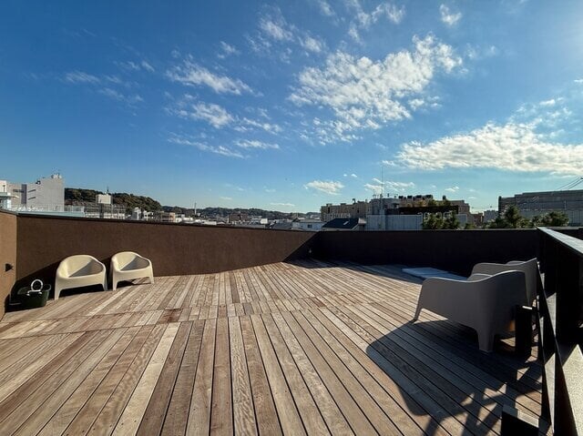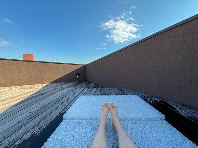 はせがわさん:御成桑拿に来たら、ぜひルーフトップで外気浴をおすすめしたいです。鎌倉にいることを一瞬で忘れてしまう解放感が味わえますし、ウッドデッキは水着のまま寝転びOK!大の字になって休憩できる施設はなかなかないので、貴重ですね。