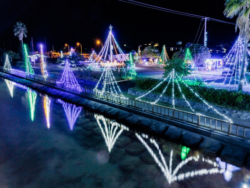 冬といえば、イルミネーションの季節。いちき串木野市で冬の夜を楽しむなら、照島神社に隣接する「なぎさ公園」がおすすめです。例年、冬になると公園内が色とりどりの光で彩られ、幻想的な景色が広がります。