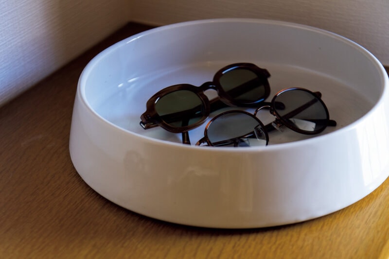 出がけにさっと手に取れるよう、運転用のサングラスは玄関のトレーを定位置に。