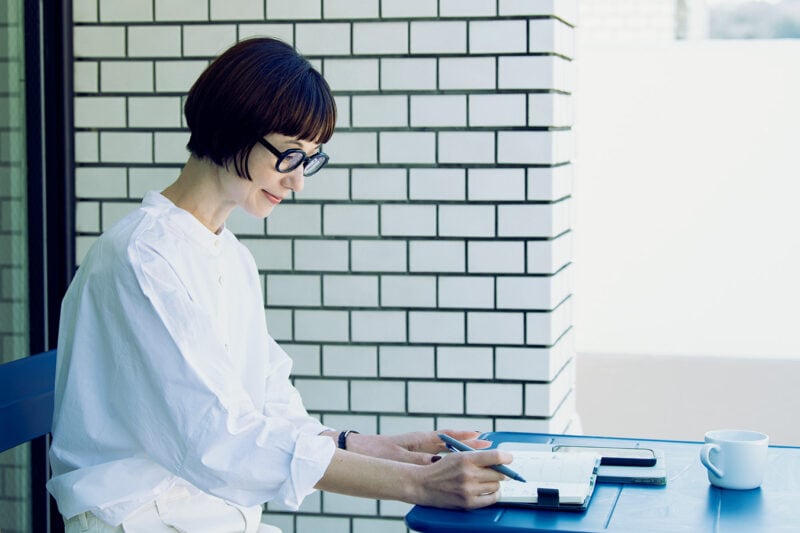 仕上げにめがねやバッグでカジュアルダウンすることで、ほどよく抜け感が出て、自分らしいスタイルになるんです。アクセサリー感覚でかけられるめがねは、メイクを控えたい日のカムフラージュにもぴったりです」