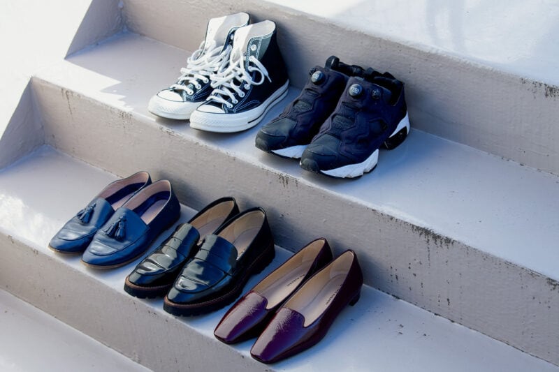 「バッグと色を合わせやすい黒がほとんど。ローファーならヒールがなくてもきれいにまとまります」