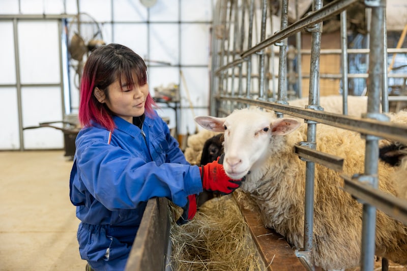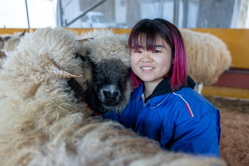 そんな私が羊と関わる仕事につこうと思ったのは、大学のサークルでの経験が大きいです。サークルでは、羊を飼育する活動をしていました。それまで羊には、動物園で触れたことがある程度でしたが、関わっていくうちに、羊が人になつくことや、犬猫のような可愛さがあることを知りました。普段、穏やかな子が多いところも好きで、羊の牧場で働きたいと思うようになりました 。