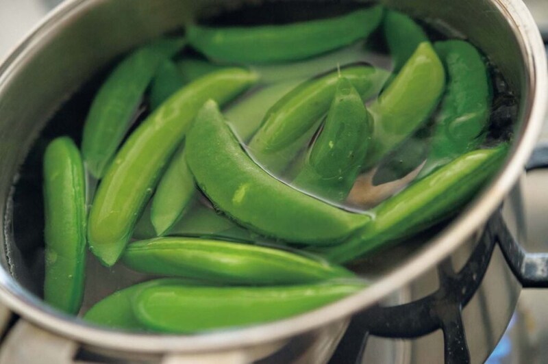 1.スナップエンドウは筋を取り、2分茹でてザルに広げて手早く冷まし、サヤを開いておく。
