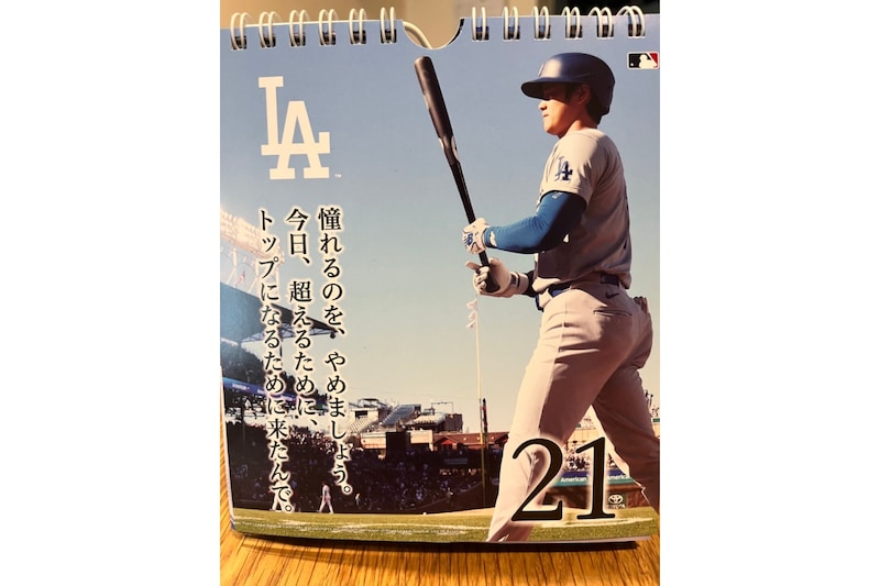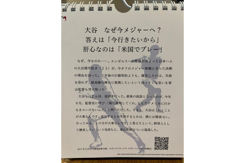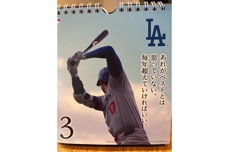 Amazonでみる横15 cm高さ17 cmのコンパクトな卓上カレンダーながら、31枚それぞれに大谷選手の写真と名言が、また裏ページにはその名言を残した際の小ネタや裏話まで記載されています。