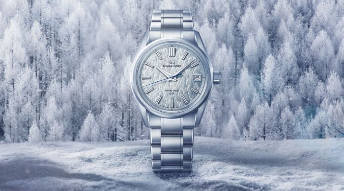 さらに、日本の美意識が息づく文字盤の芸術性が身に著ける人に自信を授ける。グランドセイコーのスプリングドライブの製造拠点であるセイコーエプソン塩尻事業所内「信州 時の匠工房」の近域で厳冬期に現れる幻想的な樹氷林を精緻な型打模様とカラーリングで表現しているのだ。精緻な直線を基調とする模様に繊細な白銀色を重ね合わせた文字盤は、樹氷が凍てつく風に吹かれて陽光にきらめく様子を想起させる。また、忍耐強く何かを極めることが、人々を感動させるパフォーマンスを生み出すことにつながるというメッセージをも伝えてくれるようだ。