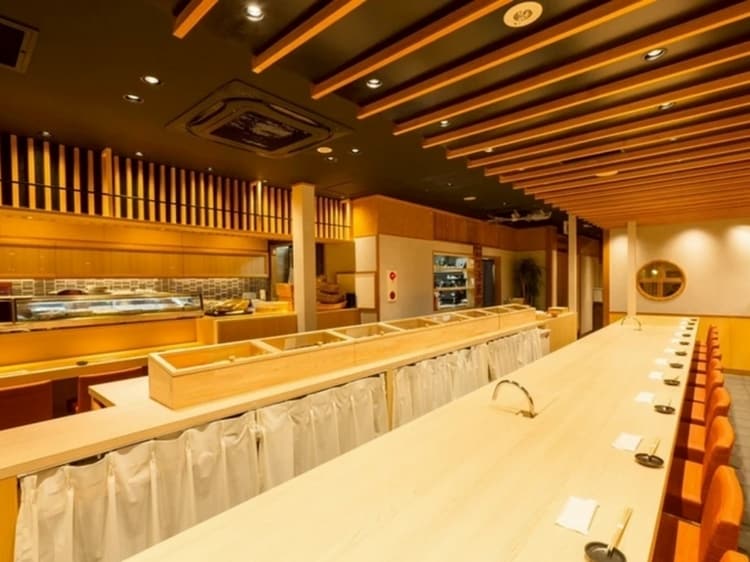 広々としたカウンター席。調理風景を見ることができるのでライブ感も楽しめます