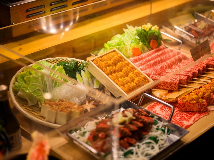 こちらの自慢は、何と言っても素材のクオリティです。看板のA5和牛サーロインは一度も冷凍せず、徹底した温度管理で肉本来の風味を保持。また、魚介は毎朝築地に届く最高級品のみを厳選しています。入り口横の鉄板コーナーからは、肉を焼き上げる音とフランベの炎が上がり、そのライブ感溢れる光景を動画に収めるゲストも多いといいます。