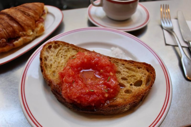 こちらは2〜3個作り置きをして、なくなったら、また用意する、というのを1日中繰り返すそうで、注文時にリクエストすると焼いてくれる。これもまた、コーヒーとよくあった。私は、クロワッサンサンドのほうが朝ごはんに好きかもしれない。パン・コン・トマテは、クイックランチに食べたい気がする。