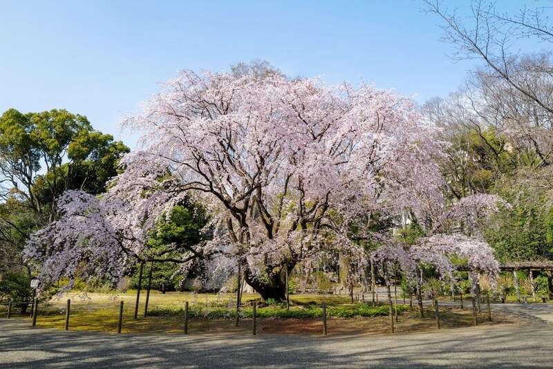 六義園のシンボルは、なんといっても高さ約15m、幅約20mに及ぶ巨大な「しだれ桜」。