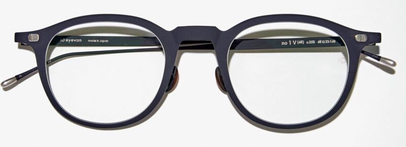 シート状のチタンを型抜きしたフレームは、存在感と軽さを両立。鼻パットは真珠貝を使用し、高級感のある造りに。