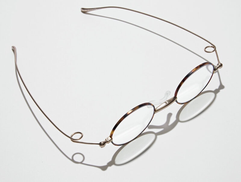 側頭部から耳の後ろにかけてアーチになったテンプルは、鯖江の職人による手曲げで、やわらかなフィット感が高評価。