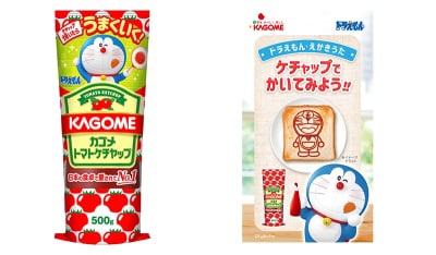 フライパンを片手に可愛らしくポーズを決めるドラえもんがデザインされた「カゴメトマトケチャップ(500g)」が、4月中旬より全国のスーパーや小売店で順次販売されます。キッチンに置いておくだけで、料理の時間が少し楽しくなりそうな特別仕様です。
