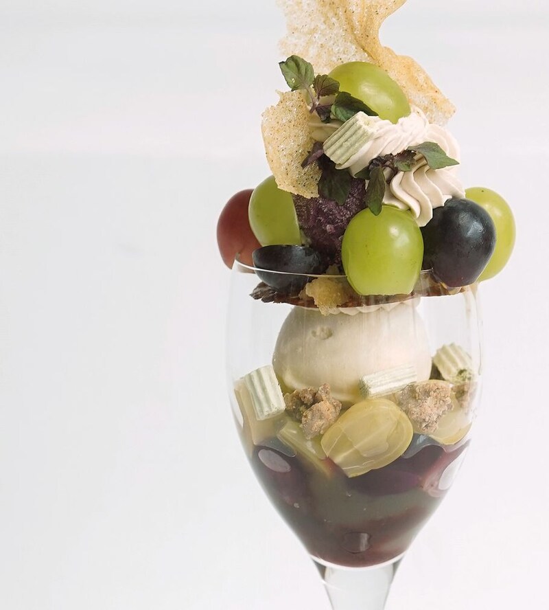 「金木犀の香りがしておいしい。こんなに香りがするんだと驚きました。 ブドウが味わえるジューシーなパフェ。ひとつひとつの香りがふわっと広がって上品で、ゆっくり味わって食べたくなります。中のカラメルの苦味と食感がアクセント。ホワイトチョコのアイスも生姜がスパイシーで印象的でした。 」