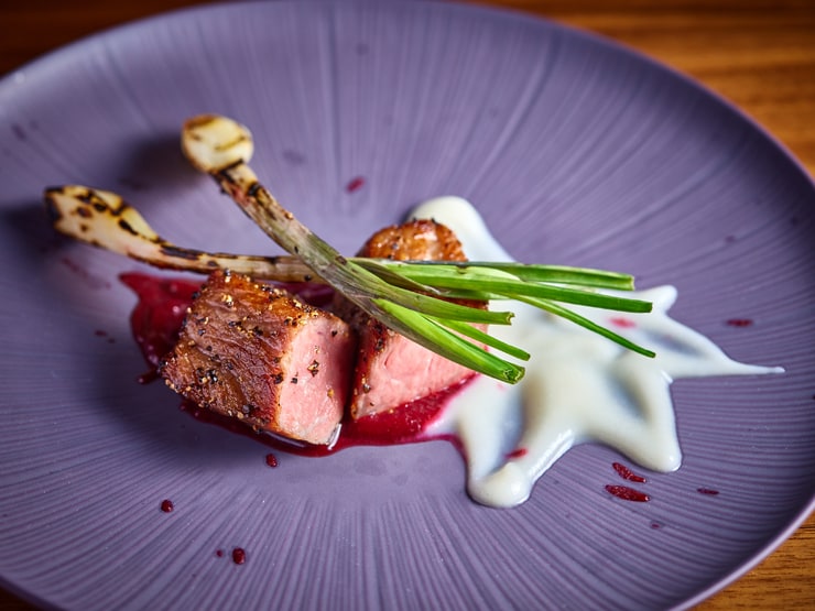 低温調理を施した石垣牛に二種類のソースが味わい深さをプラス