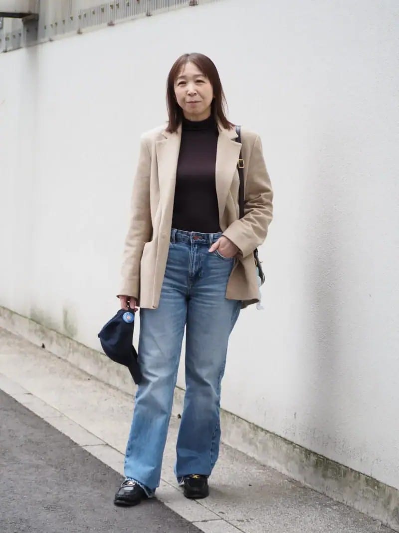 イタリア発のファッションブランド「ナラカミーチェ」のシャツにジャケットをオン。きちんと感のあるアイテムとラフなワイドデニムとのテイストミックスに注目です。ピンクのバッグやストールで春めいた着こなしに。