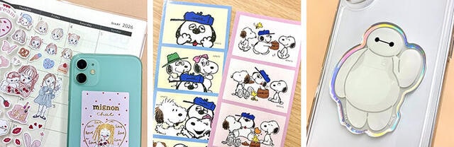 「ステッカーショーケース」は、手帳デコや日々の記録を可愛く彩るシールセット。日常のワンシーンや感情・体調を表現した小さな粒シールと、スマホケースやノートをアレンジしやすい大きめステッカーがセットになっている。LINEスタンプで話題のクリエイターを起用し、キュート・レトロ・カジュアルなど、気分や手帳の雰囲気に合わせて選べる豊富なバリエーションを用意した。全8点、各同330円。