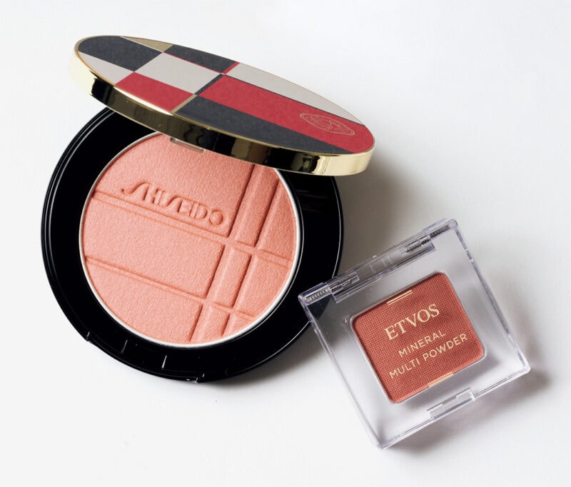 (右)肌なじみのいいピンクベージュ。明る過ぎないので普段使いしやすい。エトヴォス ミネラルマルチパウダー トープピンク ¥2,530/エトヴォス