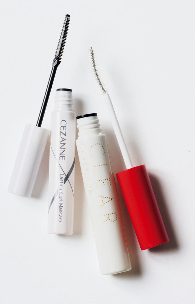 (左)水、皮脂、湿気に強く、上向きカールをしっかりキープする。セザンヌ 耐久カールマスカラ 00 クリア ¥638/セザンヌ化粧品