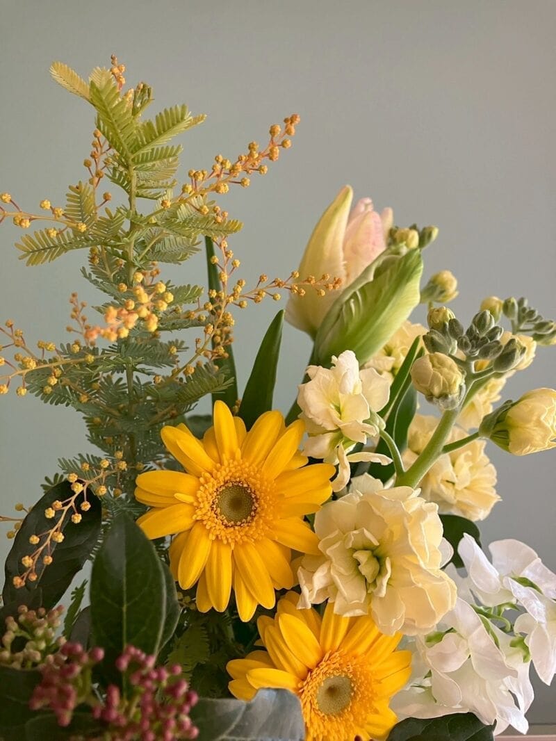 元気がほしい日は、明るい黄色の花に目がいくこともあるし、少し落ち着きたい日は、白やグリーンの静かな花を選ぶこともあります。
