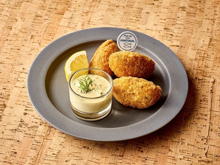 バカリヤウ(干しタラ)とジャガイモをたっぷり混ぜこんだポルトガルの伝統的なコロッケに、日本人向けのアレンジとしてハーブ風味のタルタルソースを添えているのがポイントの一品です。