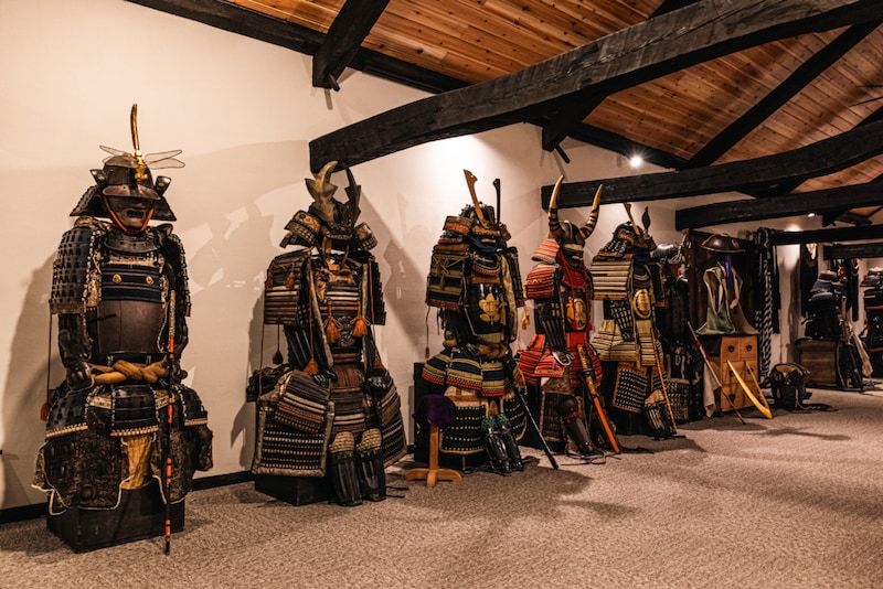 3階は甲冑の展示スペースです。試着用のレプリカのほか、祖父が手づくりした甲冑もあるんですよ。これらのものから、脈々と受け継がれてきた地域の歴史の価値を感じてもらえたらと思っています。