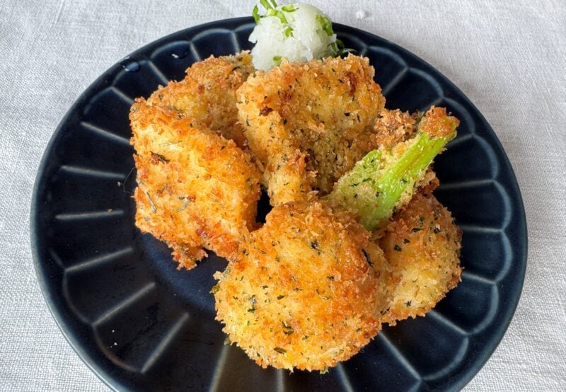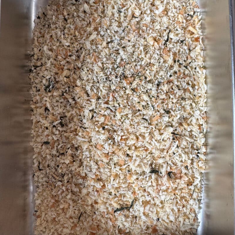 パン粉に混ぜるお茶の葉は、ほんのり香るくらいがちょうどいい。入れすぎると苦味が出やすいため小さじ1程度に。
