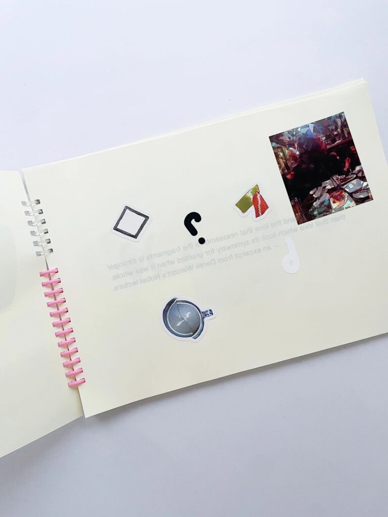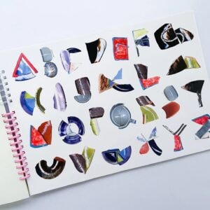 昨年、「TOKIO ART BOOK FAIR」への出展に際して、福岡の『本屋青旗 Ao-Hata Bookstore』と、美術作家・藤田紗衣さんが主催する出版社「pharmacy」との3組で『GAP』という、シール帳の体裁をした本をつくった。タイトルは「割れ目」や「隙間」という意味とともに、わたしたちの頭文字(「G」oods、「A」o-HATA、「p」harmacy)を繋いだものでもある。内容はきわめてシンプルで、『Goods』がこれまでに生んだ割れ物の欠片をAからZ、0から9に見立てて書体化し、シールにして一冊に綴じた。読者は実際にアルファベットを、つまり、かつての陶器の破片、イメージの断片を自由に組み合わせて遊べる、というもの。ウォルコットが説く、かたちを失った断片を再び寄せ集めることの尊さに対して、われわれなりに、すこしバカらしい回答をしてみたかったのだ。