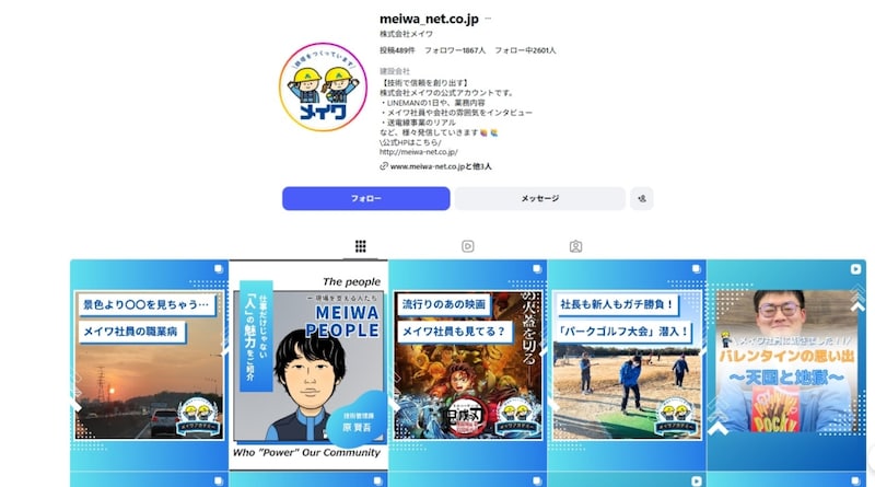 メイワのInstagramでは社員紹介などさまざまな切り口で送電という仕事をわかりやすく紹介