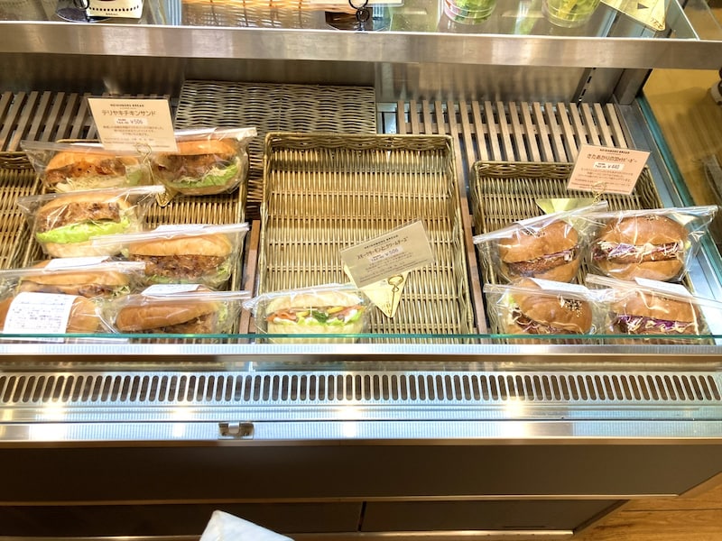 バーガーやサンドなど食事系のパンもあります。オフィスビルの地下にあるので、こうしたボリュームある食事系パンが働かれている方々のニーズとしてあるものと思われます。