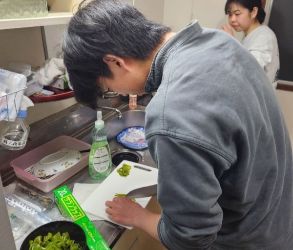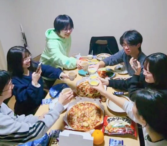 最終日の夜、シェアハウスの一室で「お別れピザパーティー」が開かれました。
