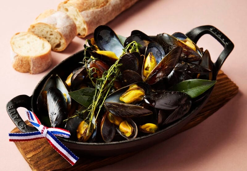 フランス料理といえばムール貝! ということでもう一つご紹介したいのが、ノルマンディーなどフランスの港町の定番メニューとして知られる「ムール マリニエール」。 白ワインで蒸し上げることで、ムール貝の旨味が溶け込んだ濃厚なスープとふっくらした身が絶品! 素材そのものの旨みを存分に引き出したご自慢の料理です。