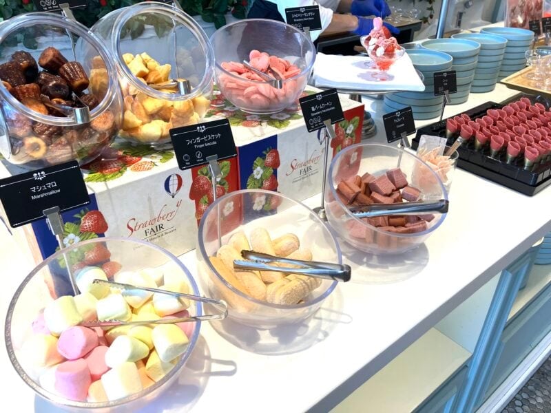 もちろんストロベリーフェアですから、デザートも種類豊富。フレッシュいちごやマシュマロ、チョコレートなどが自由にトッピングできる「ストロベリーパルフェ工房」では、自分だけのパルフェが作れます。