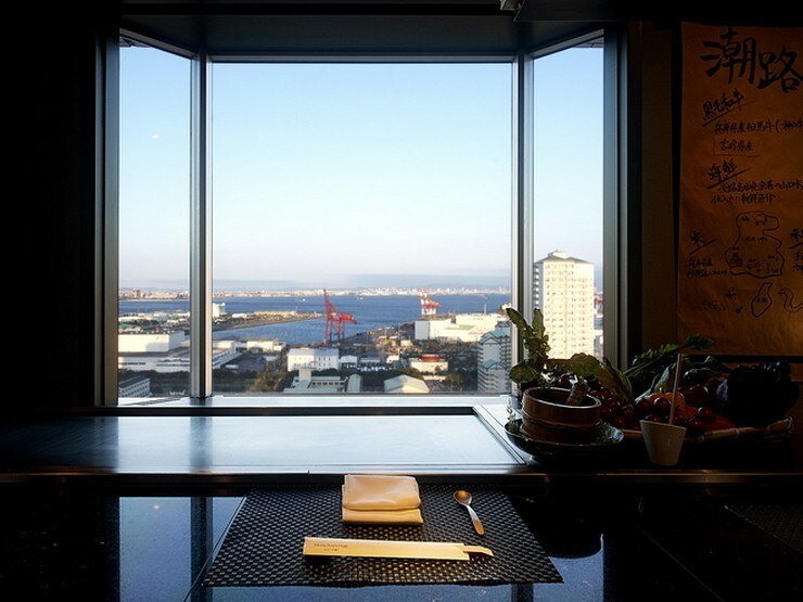 厳選した素材を鉄板焼きで楽しめる【鉄板焼 潮路】は、アイランドセンター駅から徒歩3分です。ホテルの最上階にある店内からは、大阪湾が一望のもと。鉄板の前に整然と並ぶカウンター席で、目の前で繰り広げられるシェフの美技、調理のライブ感と、雄大な景色を五感で満喫しましょう。