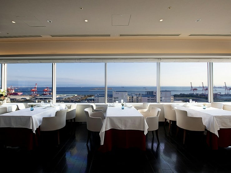 アイランドセンター駅から徒歩3分の【スマイリーネプチューン】は、ホテルプラザ神戸18Fにあるフレンチレストラン。開放感のある大きな窓から、神戸の港が一望できます。太陽の光に輝く昼の海もいいですが、きらめく夜景はロマンチック。特別な日にぴったりで、二人の世界に浸れそうです。