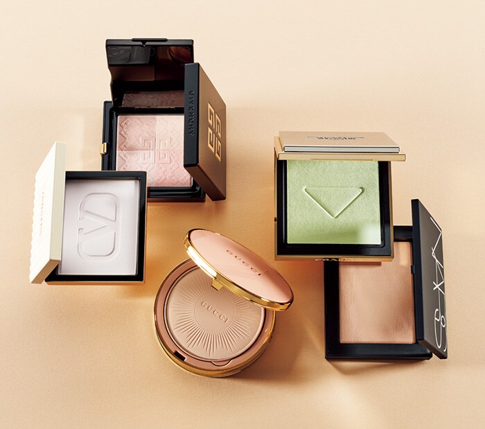 ノーカラーやベージュだけでなく、グリーンや輝きのあるタイプなど、ユニークなカラー&質感が増えつつあるプレストパウダー。今シーズンは、+α のメイク効果で選んでみたい。