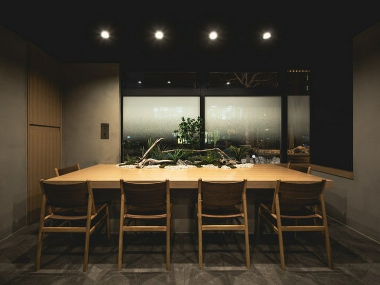 大通公園から程近く、すすきのの喧騒から離れたエリアに構えたお店は、落ち着きのある上質な雰囲気。ブラウンを基調とした店内には自然の美を活かしたオブジェが飾られ、オシャレな隠れ家のような風情が漂っています。4名までと6名までの計2室が用意されている完全個室は、早めの予約が必須です。