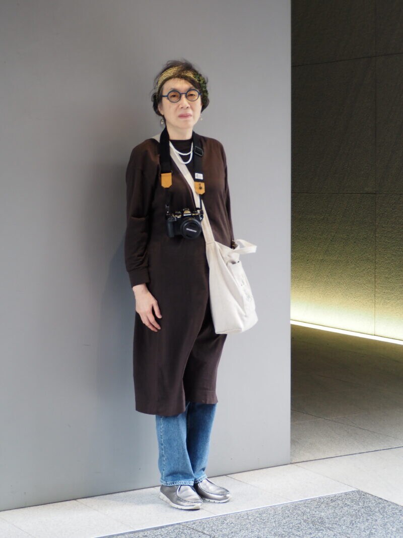 深みのあるブラウンのロングトップスは、大人の落ち着きを感じさせるアイテム。カジュアルながらも直線的なシルエットで、すっきりとした印象を演出。ストレートデニムとレイヤードすることで、ほどよくカジュアルな街歩きスタイルに。