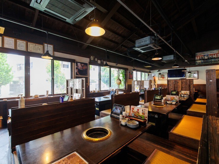 座席は全席が掘りごたつ式なので、足を伸ばしてゆったりと焼肉ができます。店内には、遊び道具がいっぱいそろったキッズスペースを用意。セットメニューやコース料理も充実しているので、子ども連れのファミリーにもオススメです。店舗内にはテイクアウトコーナーがあり、お土産に厳選肉や加工品を購入することもできます。