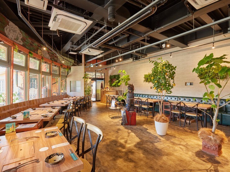 観葉植物が印象的な店内は明るくオシャレな空間