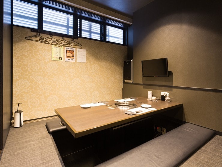 5席のカウンター席のほか、テーブルや掘りごたつ式の個室を用意。2名から26名まで人数に合わせて利用できるので、プライベート空間で、家族や大切な人とゆったりと焼肉が楽しめます。ハイボールやサワーなどドリンク類も豊富。入手困難とされるプレミアムな銘柄のワインも取りそろえています。無煙ロースターを完備しているので、煙を気にせず快適に過ごすことができます。