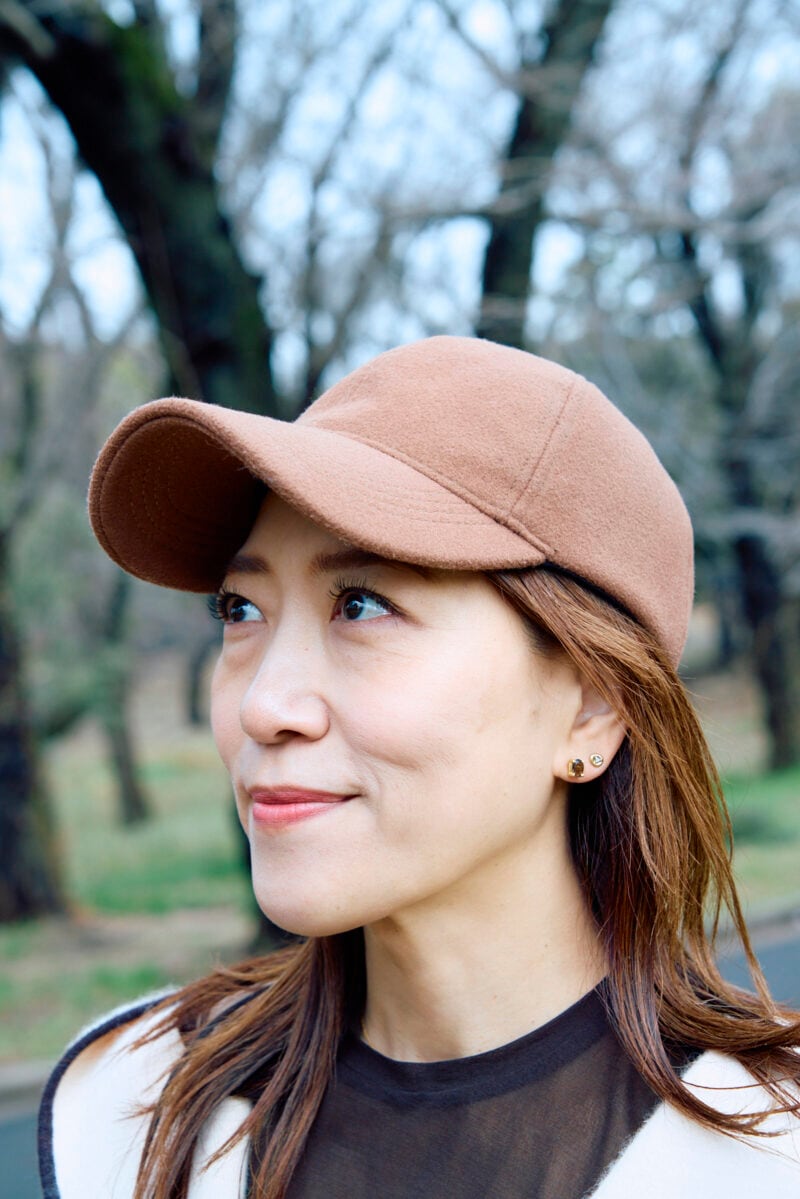 帽子は大好きなアイテムの一つ。「一日中かぶっていても疲れないことが条件です。ぴったりとフィットしたサイズ感、色味などを吟味して選びます」と栗谷さん。