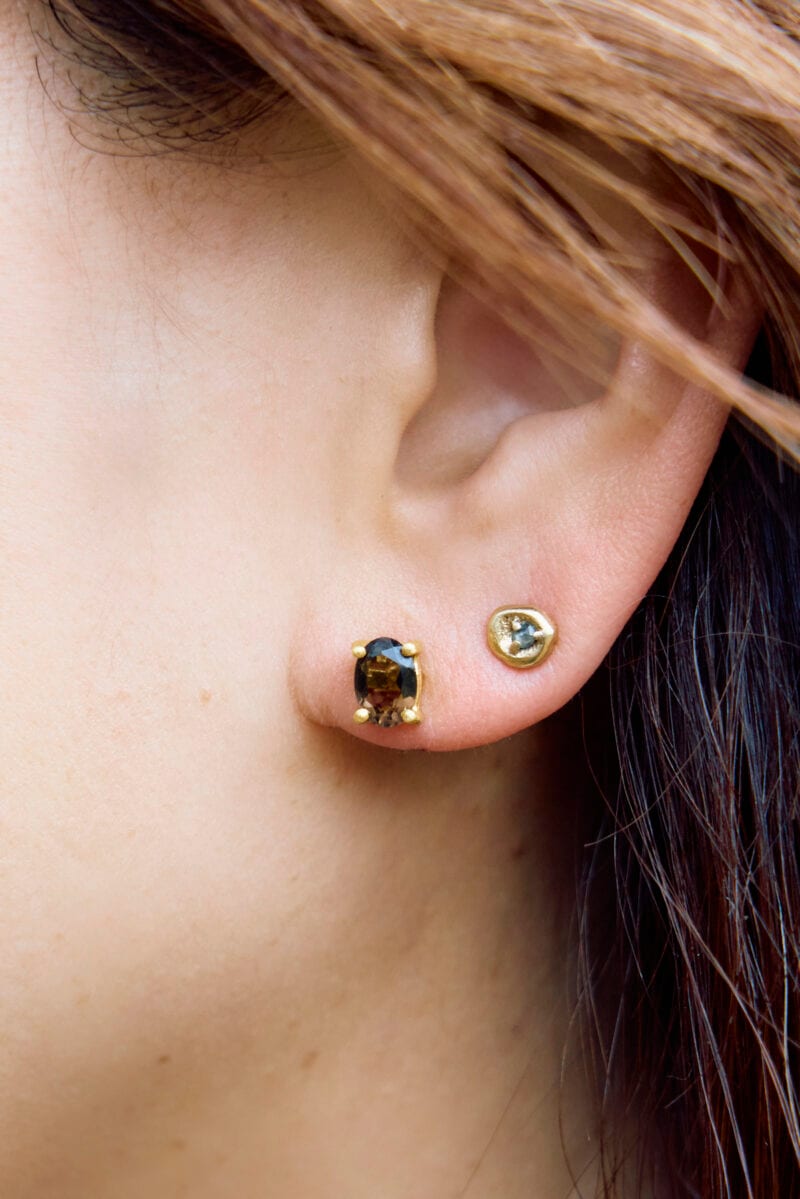 スモーキークォーツのピアスを2個づけ