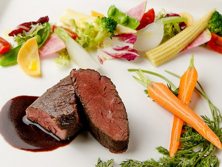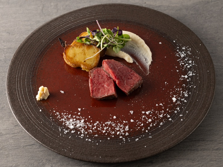 低温調理で肉の旨みを最大限に引き出した『牛ハラミ肉のステーキ 赤ワインソース』