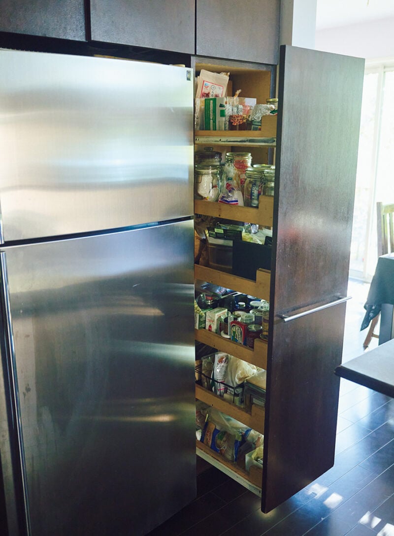 引き出し式のパントリーは、段ごとに“ 洋風”“アジア風”など、食材の種類をざっくり決めています。