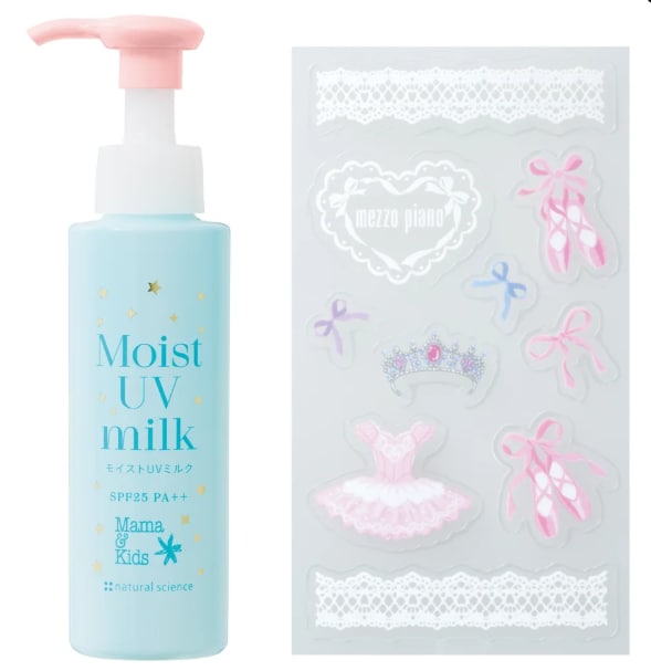 低刺激スキンケアメーカーのナチュラルサイエンスより、親子で使える日焼け止め「ママ&キッズ モイストUVミルク」の限定デザインが2026年4月1日に発売されました。子ども服ブランド「mezzo piano(メゾ ピアノ)」とのコラボデザインで、バレリーナをモチーフにしたオリジナルシールが付属。シールを貼ってボトルを自由に彩ることで、「子ども自身がスキンケアに関わるきっかけ作りになれば」という思いが込められています。